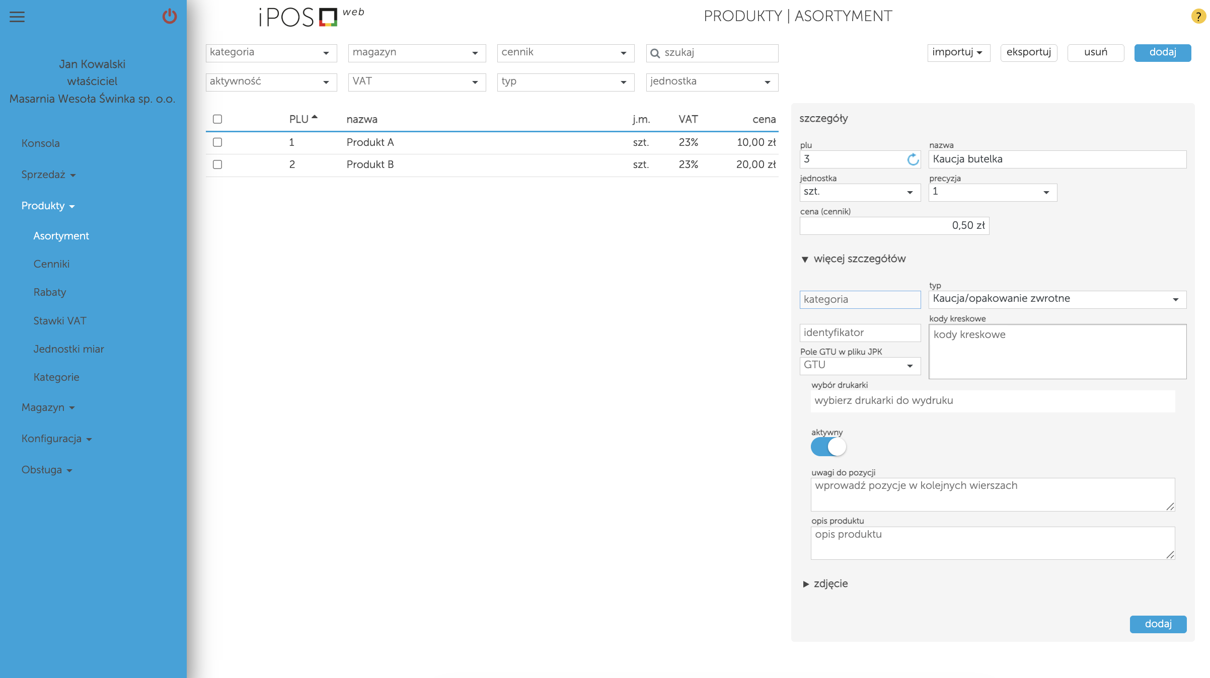 Więcej na temat dodawania produktu na platformie iPOSweb znajdziesz tutaj.