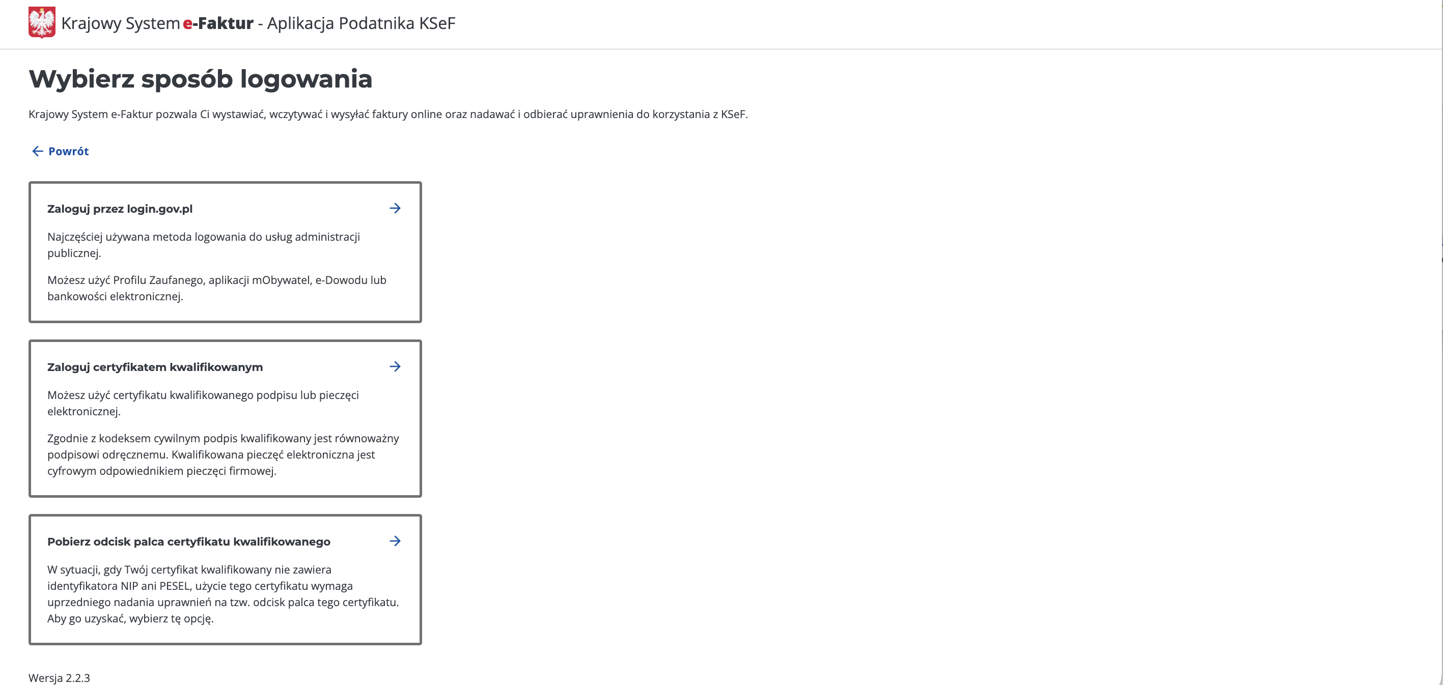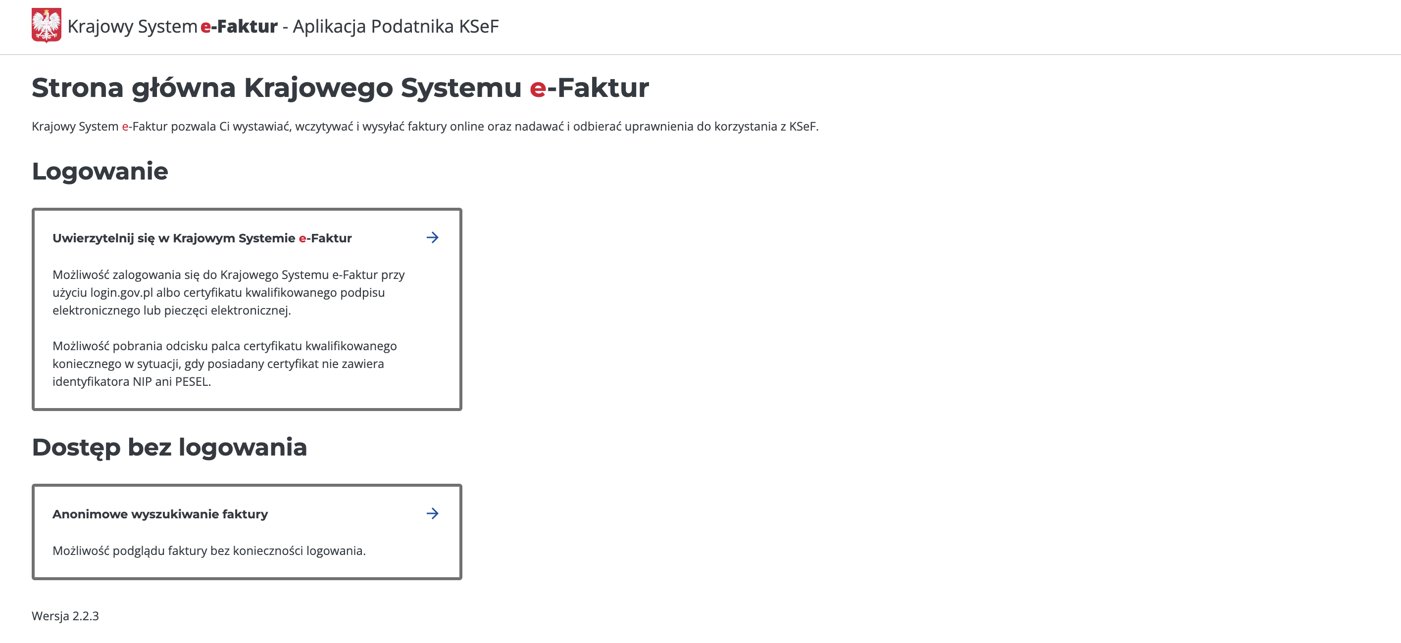 - Po pozytywnej autoryzacji, uzyskasz dostęp do systemu KSeF.